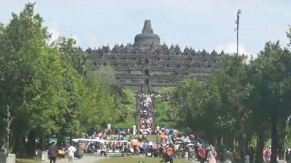 Candi Borobudur ini sangat terkenal dan dikelilingi oleh Gunung Merapi dan Merbabu di sebelah Timur, Gunung Sindoro dan Sumbing di sebelah Utara, dan pegunungan Menoreh di sebelah Selatan.