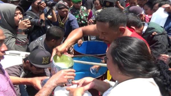 Air ini kemudian dipakai warga untuk mencuci muka, tangan dan ada yang dibawa pulang. Mereka percaya air ini akan mendapatkan berkah. “Ini buat cuci muka biar segar, awet muda dan rejeki lancar,” ucap seorang warga, Sucipto.