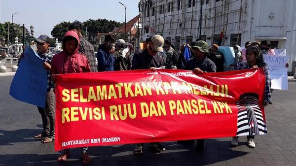 Kali ini, aliran dukungan revisi UU KPK datang dari kelompok masyarakat yang mengatasnamakan diri sebagai Masyarakat Kopi (Maskop). Sedikitnya 25 anggota komunitas ini turun ke jalan dengan menggelar aksi di titik nol Kilometer Yogyakarta.