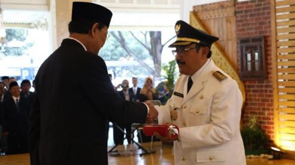 YOGYAKARTA, iNews.id – Gubernur DIY Sri Sultan Hamengkubuwono X melantik Sutedjo menjadi Bupati Kulonprogo periode 2017-2022 di Bangsal Kepatihan, Yogyakarta, Kamis (7/11/2019). Beliau yang sebelumnya menjabat wakil bupati Kulonprogo menggantikan Hasto Wardoyo yang ditunjuk Presiden sebagai Kepala BKKBN.